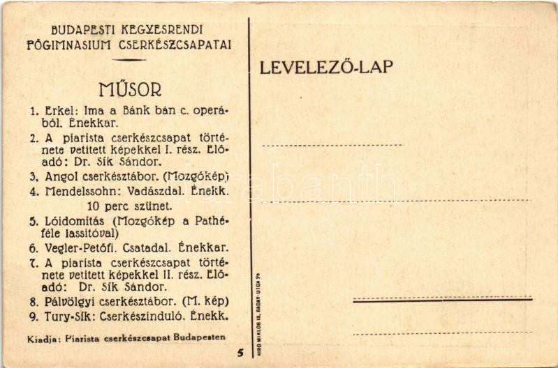 Készül a cserkész ebéd. Budapesti Kegyesrendi Főgimnázium cserkészcsap... https://www.darabanth.com/de/444-Fernauktion/444.0/Ansichtskarten/Pfadfinder~2000020/Keszul-a-cserkesz-ebed-Budapesti-Kegyesrendi-Fogimnazium-cserkeszcsapatai-Piarista-Cserkes~II2928590