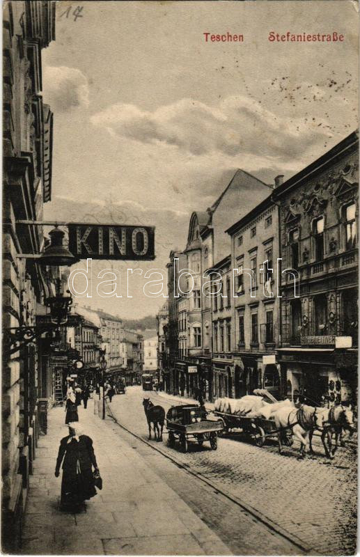 1916 Cieszyn, Teschen; Stefaniestrasse, Kino / street, cinema, shop of... https://www.darabanth.com/de/444-Fernauktion/444.0/Ansichtskarten/Polen~2000056/1916-Cieszyn-Teschen-Stefaniestrasse-Kino-street-cinema-shop-of-Sofie-Leitner-fa~II2932306