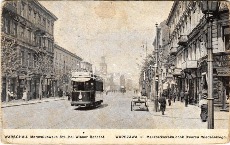 Beschreibung: 1916 Warszawa, Varsovie, Warschau, Warsaw; Marszalkowska Str. bei Wiener Bahnhof / Marszalkowska obok Dworca Wiedenskiego / railway station, tram (EB)