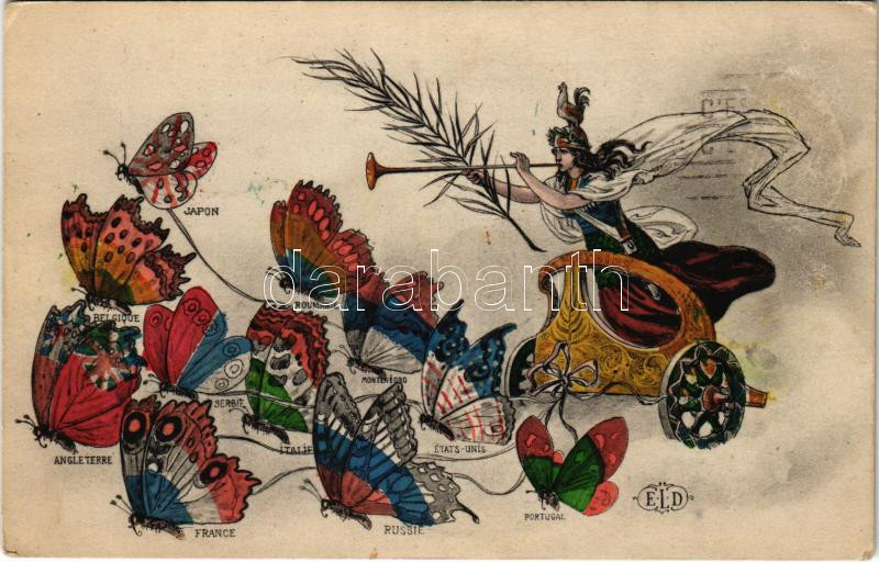 1918 French Triple Entente Powers propaganda art postcard with butterf... https://www.darabanth.com/de/444-Fernauktion/444.0/Ansichtskarten/Propaganda-Politik~2000061/1918-French-Triple-Entente-Powers-propaganda-art-postcard-with-butterflies-EK~II2929982
