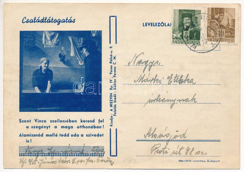 1944 Családlátogatás. Szent Vince szellemében keresd fel a szegényt a maga otthonában! Alamizsnád mellé tedd oda a szívedet is! Kiadja a NISZVIM / Hungarian charity propaganda (EK)