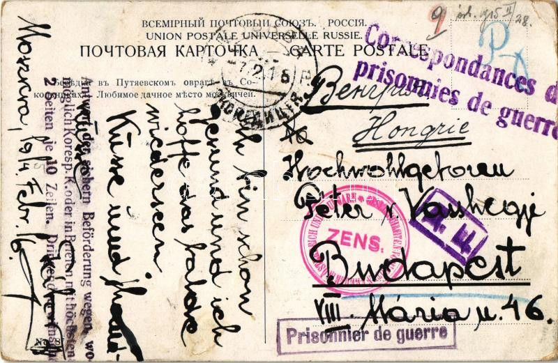 Beschreibung: 1914 Moscow, Moscou; Sokolniki (EK) + "Correspondances des Prisonniers de Guerre" - Hadifogoly levelezőlap Oroszországból / POW postcard from Russia