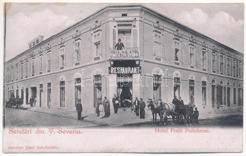 Turnu Severin, Szörényvár; Hotel Fratii Polichroni / hotel and restaur... https://www.darabanth.com/de/444-Fernauktion/444.0/Ansichtskarten/Rumanien~2000077/Turnu-Severin-Szorenyvar-Hotel-Fratii-Polichroni-hotel-and-restaurant-EK~II2931809
