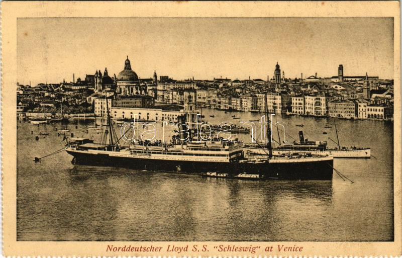 Norddeutscher Lloyd SS "Schleswig" at Venice (fl) https://www.darabanth.com/de/444-Fernauktion/444.0/Ansichtskarten/Schiffe~2000030/Norddeutscher-Lloyd-SS-Schleswig-at-Venice-fl~II2930542