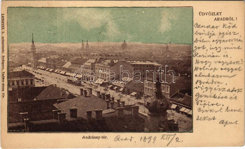 Beschreibung: 1899 (Vorläufer) Arad, Andrássy tér. Lengyel L. műintézete / square
