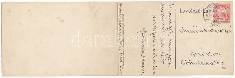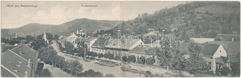 Beschreibung: 1912 Boksánbánya, Románbogsán, Németbogsán, Deutsch-Bogsan, Bocsa Montana; Strassenansicht / utca. 2-részes kinyitható panorámalap. Karl Szabonáry / street. 2-tiled folding panoramacard