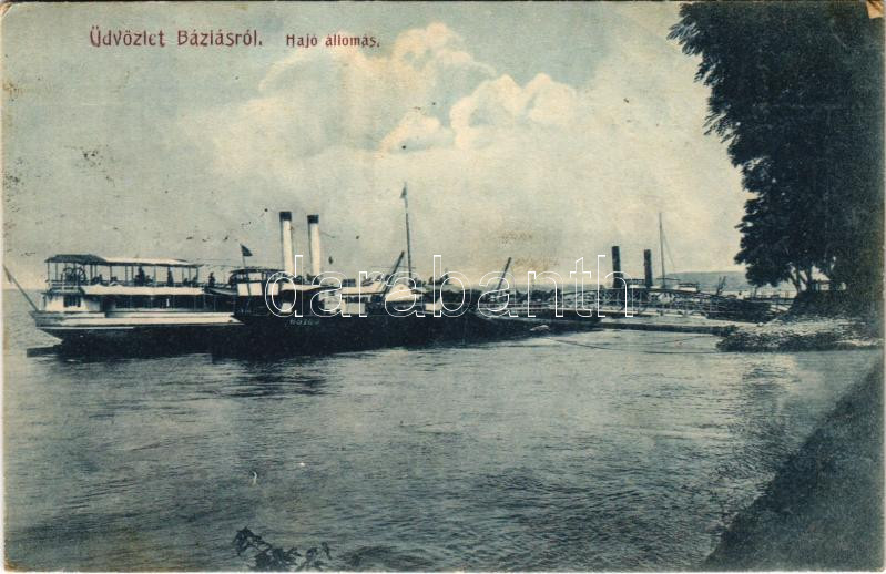 1913 Báziás, hajóállomás, gőzhajó és uszály. Dervarics Ferenc vasúti v... https://www.darabanth.com/de/444-Fernauktion/444.0/Ansichtskarten/Siebenburgen~2000006/1913-Bazias-hajoallomas-gozhajo-es-uszaly-Dervarics-Ferenc-vasuti-vendeglos-kiadasa-~II2892228