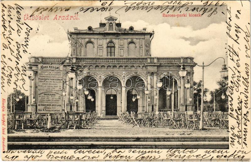 Beschreibung: 1916 Arad, Baross parki kioszk, étterem. Kerpel Izsó kiadása / kiosk, restaurant (r)