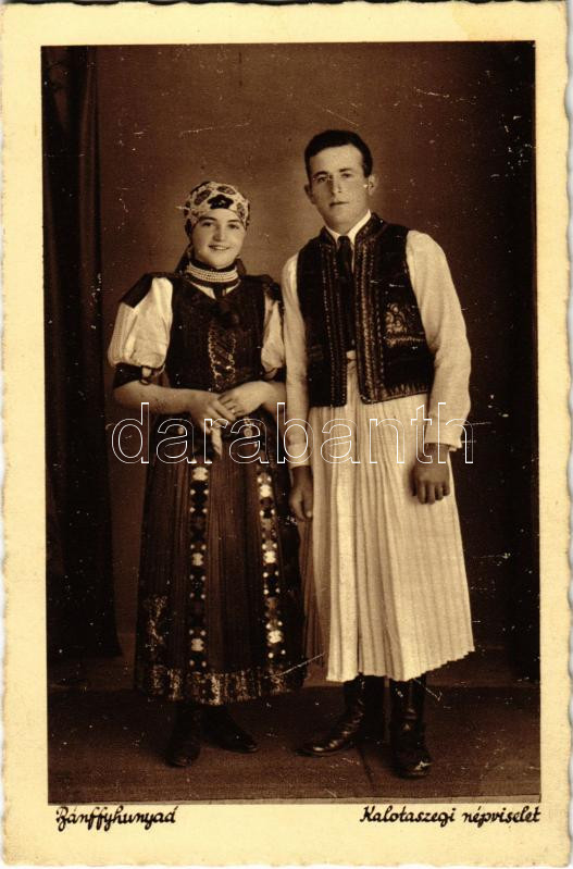 Bánffyhunyad, Huedin; Kalotaszegi népviselet / Transylvanian folklore https://www.darabanth.com/de/444-Fernauktion/444.0/Ansichtskarten/Siebenburgen~2000006/Banffyhunyad-Huedin-Kalotaszegi-nepviselet-Transylvanian-folklore~II2892237