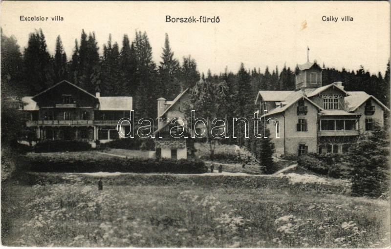 Borszékfürdő, Baile Borsec; Csiky és Excelsior villa / villas https://www.darabanth.com/de/444-Fernauktion/444.0/Ansichtskarten/Siebenburgen~2000006/Borszekfurdo-Baile-Borsec-Csiky-es-Excelsior-villa-villas~II2890536
