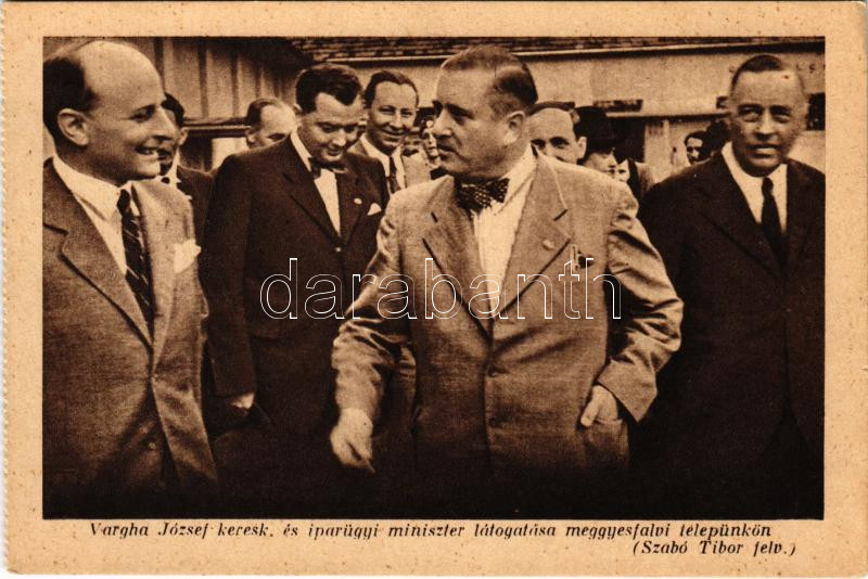Meggyesfalva, Mureseni; Vargha József kereskedelmi és iparügyi miniszter látogatása a telepen. Szabó Tibor felvétele, Erdélyrészi Hangya Szövetkezet kiadása / Minister for Trade and Industry visiting the agricultural farm (EK)