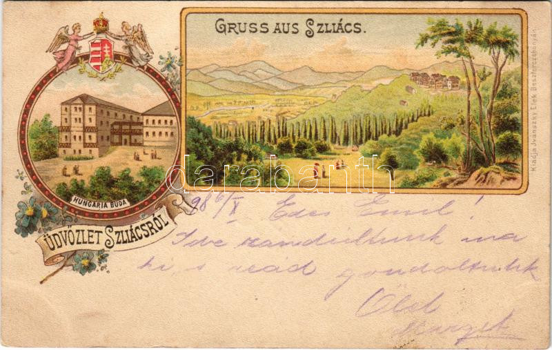 1898 (Vorläufer) Szliács, Sliac; Hungaria Buda szálloda, magyar címer.... https://www.darabanth.com/de/444-Fernauktion/444.0/Ansichtskarten/Slowakei~2000007/1898-Vorlaufer-Szliacs-Sliac-Hungaria-Buda-szalloda-magyar-cimer-Ivanszky-Elek-kiadasa-~II2932256