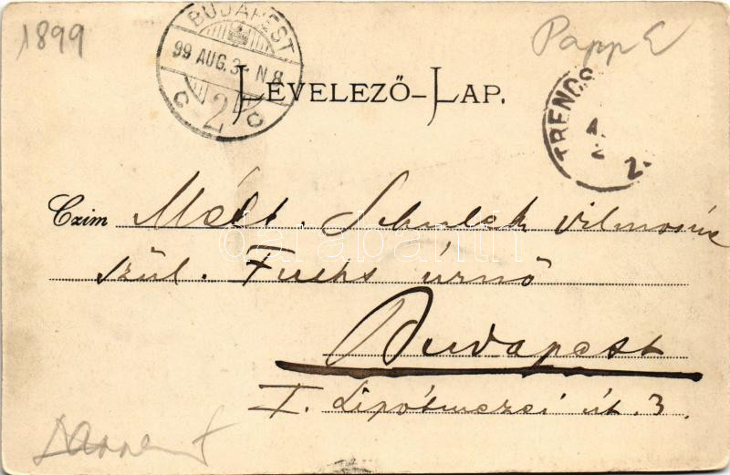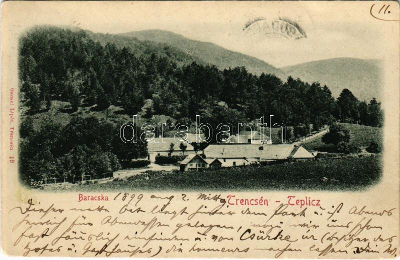 1899 (Vorläufer) Trencsénteplic, Trencianske Teplice; Baracska. Gansel... https://www.darabanth.com/de/444-Fernauktion/444.0/Ansichtskarten/Slowakei~2000007/1899-Vorlaufer-Trencsenteplic-Trencianske-Teplice-Baracska-Gansel-Lipot-29-general-view-~II2933016