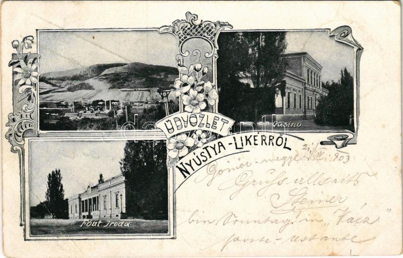 1903 Nyustya-Likér, Hnústa-Likier; Fő út, iroda, vasgyár, kaszinó / ma... https://www.darabanth.com/de/444-Fernauktion/444.0/Ansichtskarten/Slowakei~2000007/1903-Nyustya-Liker-Hnusta-Likier-Fo-ut-iroda-vasgyar-kaszino-main-street-iron-works-f~II2613395