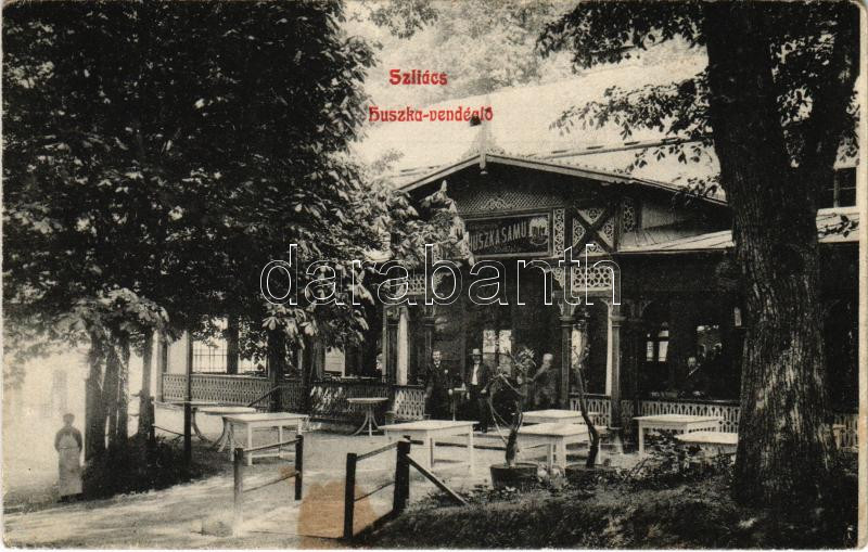 1907 Szliács, Sliac; Huszka Samu vendéglője / restaurant, spa (fl) https://www.darabanth.com/de/444-Fernauktion/444.0/Ansichtskarten/Slowakei~2000007/1907-Szliacs-Sliac-Huszka-Samu-vendegloje-restaurant-spa-fl~II2927968