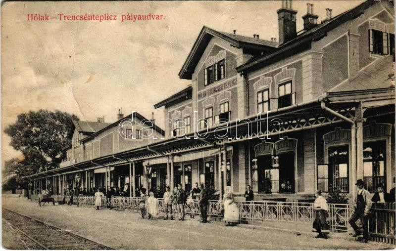 Beschreibung: 1908 Hőlak-Trencsénteplic, Hőlak, Trencséntepla, Trencsén-Tepla, Trencianske Teplá, Trencianska Teplá-Teplice; vasútállomás. Dallmann Ferenc kiadása / railway station (fa)