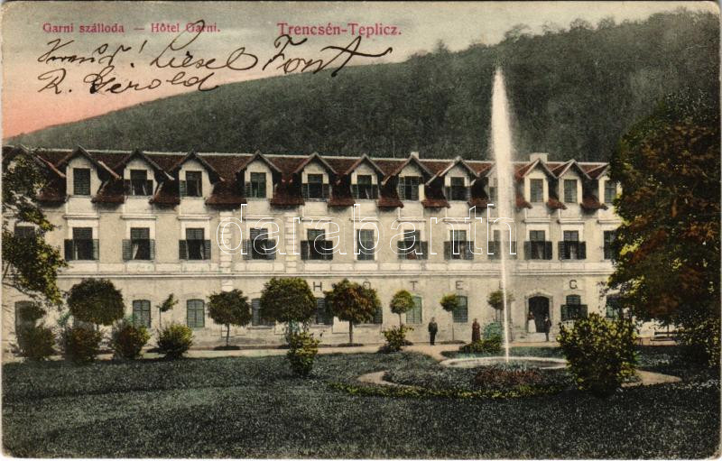 1908 Trencsénteplic, Trencianske Teplice; Garni szálloda. Wertheim Zsi... https://www.darabanth.com/de/444-Fernauktion/444.0/Ansichtskarten/Slowakei~2000007/1908-Trencsenteplic-Trencianske-Teplice-Garni-szalloda-Wertheim-Zsigmond-kiadasa-Hotel-Garni~II2926351