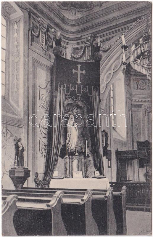 Beschreibung: 1909 Liptóújvár, Liptovsky Hrádok; Kincstári római katolikus templom, Rákóczi oltár / Catholic church, interior, altar (EK)