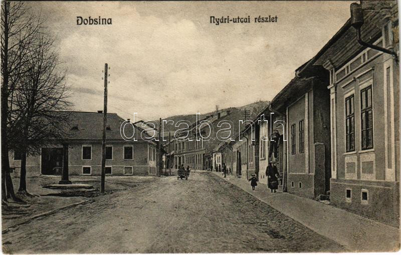 1915 Dobsina, Dobschau; Nyári utca / street (r) https://www.darabanth.com/de/444-Fernauktion/444.0/Ansichtskarten/Slowakei~2000007/1915-Dobsina-Dobschau-Nyari-utca-street-r~II2932174