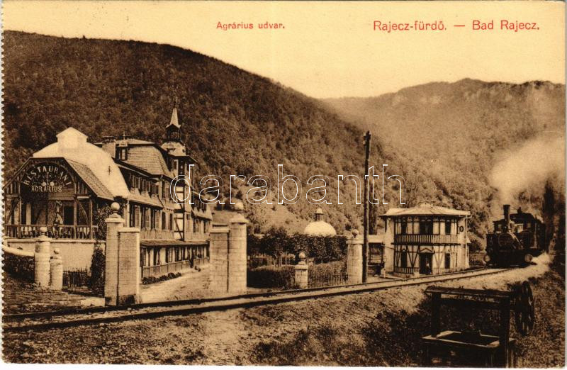 1935 Rajecfürdő, Rajecké Teplice; Agrarius udvar, szálloda és étterem,... https://www.darabanth.com/de/444-Fernauktion/444.0/Ansichtskarten/Slowakei~2000007/1935-Rajecfurdo-Rajecke-Teplice-Agrarius-udvar-szalloda-es-etterem-gozmozdony-vonat-ho~II2929381