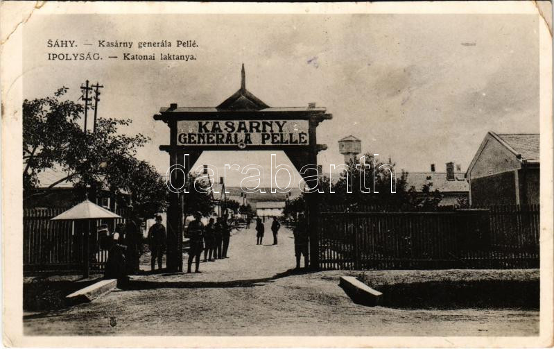 1938 Ipolyság, Sahy; Kasárny generála Pellé / Katonai laktanya / milit... https://www.darabanth.com/de/444-Fernauktion/444.0/Ansichtskarten/Slowakei~2000007/1938-Ipolysag-Sahy-Kasarny-generala-Pelle-Katonai-laktanya-military-barracks-EK~II2730227