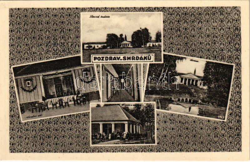 BüdöskÅ‘-fürdÅ‘, Smrdáky Kúpele, Szmrdák (Szenice, Senica); RadioaktÃvne sirnaté a solné liecivé kúpele pri Senici na Slovensku nad Myjavou, teresa, Hlavná budova, tanecnà sal / RadioaktÃv kénes és sós gyógyfürdÅ‘ Miava mellett, táncterem belsÅ‘. Kiadja Dr. S. Hajdu / Radioactive sulfur and salt spa, bath, villa, dancing hall interior. Art Nouveau