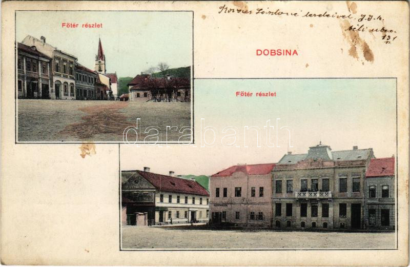 Beschreibung: Dobsina, Dobschau; Fő tér, gyógyszertár, Altstock Ede üzlete. Köhler Arthur kiadása / main square, pharmacy, shop (fl)