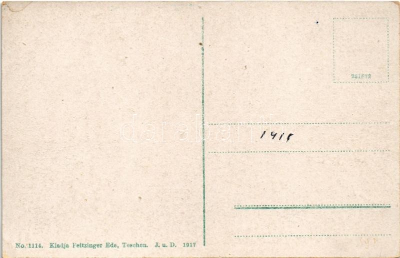 Beschreibung: Gölnicbánya, Göllnitz, Gelnica; Városház, takarékpénztár, utca. Feitzinger Ede No. 1114. 1917. / town hall, savings bank, street (EK)