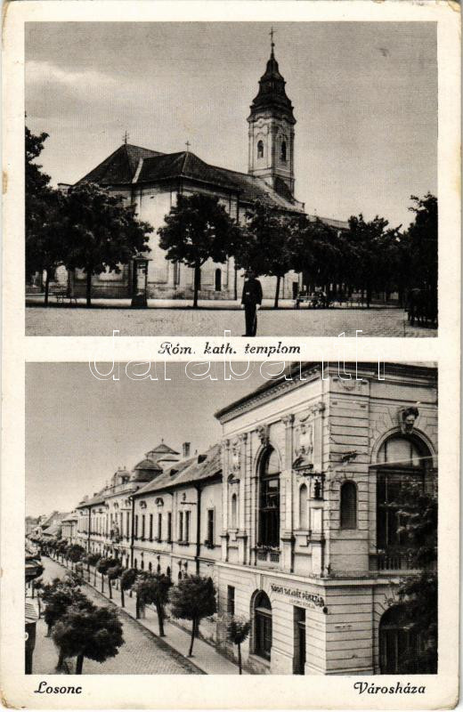 Losonc, Lucenec; Római katolikus templom, Városház, takarékpénztár / c... https://www.darabanth.com/de/444-Fernauktion/444.0/Ansichtskarten/Slowakei~2000007/Losonc-Lucenec-Romai-katolikus-templom-Varoshaz-takarekpenztar-church-town-hall-saving~II2932783