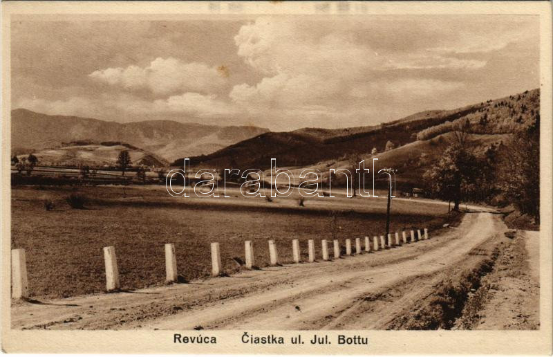 Beschreibung: Nagyrőce, Gross-Rauschenbach, Velká Revúca; Ciastka ul. Jul. Bottu / út részlet Murány felé. J. Edelmann kiadása. Foto Neubauer / road to Murán