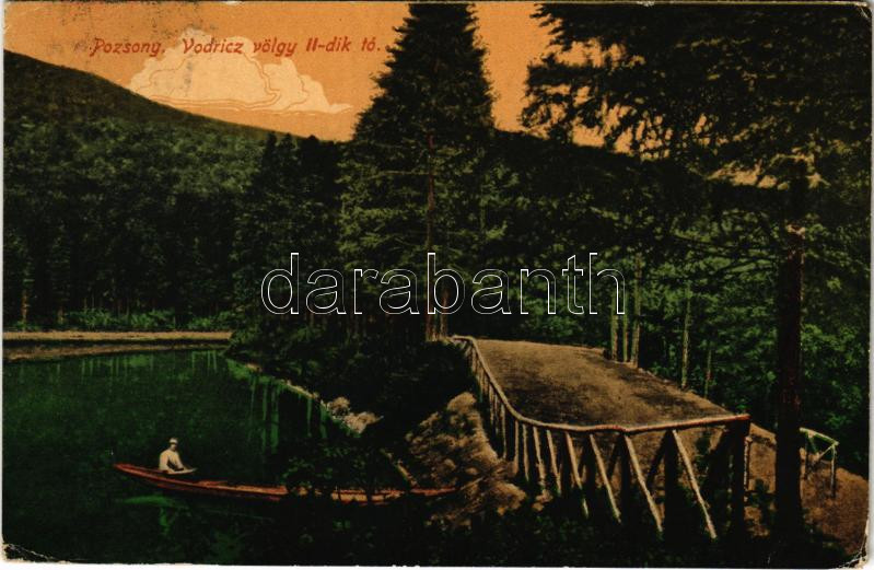 Beschreibung: Pozsony, Pressburg, Bratislava; Vödriczvölgy II. Vödric tó, csónakok. Kaufmann kiadása / Weidritzthal, II. Teich / Vydrica lake, boats (EM)