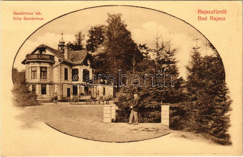 Rajecfürdő, Rajecké Teplice; Gambrinus lak. Jassniger H. kiadása / vil... https://www.darabanth.com/de/444-Fernauktion/444.0/Ansichtskarten/Slowakei~2000007/Rajecfurdo-Rajecke-Teplice-Gambrinus-lak-Jassniger-H-kiadasa-villa-spa~II2927958