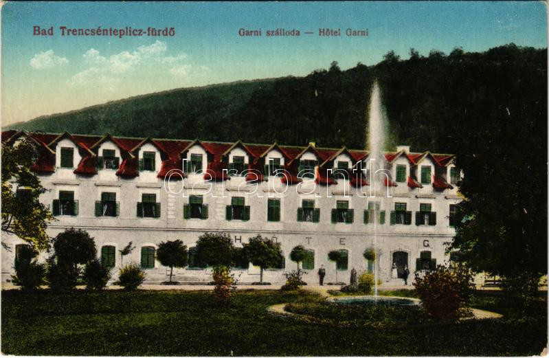 Trencsénteplic, Trencianske Teplice; Garni szálloda. Vasúti levelezőla... https://www.darabanth.com/de/444-Fernauktion/444.0/Ansichtskarten/Slowakei~2000007/Trencsenteplic-Trencianske-Teplice-Garni-szalloda-Vasuti-levelezolaparusitas-9-Hotel-Ga~II2926350