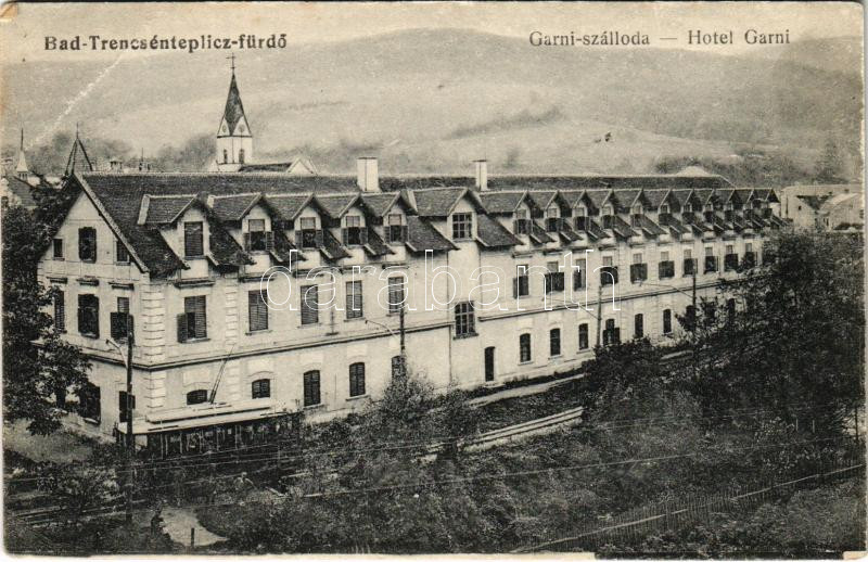 Trencsénteplic, Trencianske Teplice; Garni szálloda, villamos. Werthei... https://www.darabanth.com/de/444-Fernauktion/444.0/Ansichtskarten/Slowakei~2000007/Trencsenteplic-Trencianske-Teplice-Garni-szalloda-villamos-Wertheim-Zsigmond-kiadasa-Hotel-~II2926352