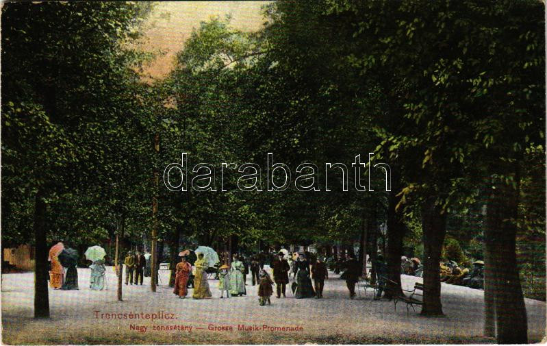 Beschreibung: Trencsénteplic, Trencianske Teplice; Nagy zenesétány. Wertheim Zsigmond kiadása / Große Musik-Promenade / music promenade, spa (EK)