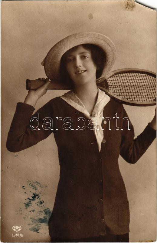 1913 Teniszező hölgy / Tennis lady, sport. EAS L 35/6. (EM) https://www.darabanth.com/de/444-Fernauktion/444.0/Ansichtskarten/Sport~2000068/1913-Teniszezo-holgy-Tennis-lady-sport-EAS-L-356-EM~II2928837