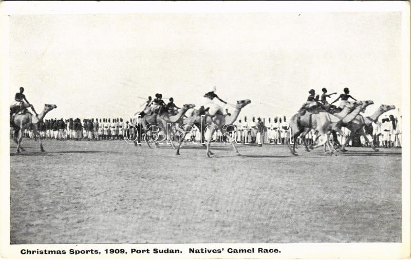 Port Sudan, Christmas Sports 1909. Natives' Camel Race (EB) https://www.darabanth.com/de/444-Fernauktion/444.0/Ansichtskarten/Sudan~2000087/Port-Sudan-Christmas-Sports-1909-Natives-Camel-Race-EB~II2930633
