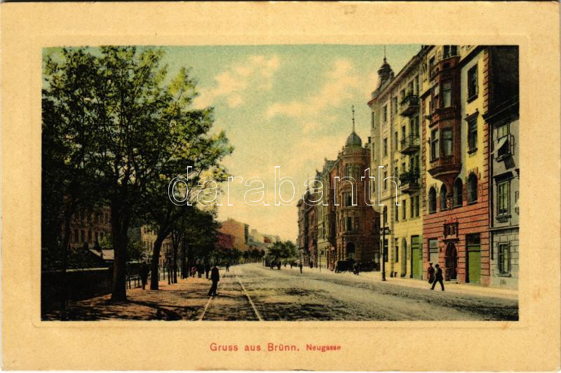 Brno, Brünn; Neugasse / street view- Verlag Ascher & Redlich https://www.darabanth.com/de/444-Fernauktion/444.0/Ansichtskarten/Tschechische-Republik~2000041/Brno-Brunn-Neugasse-street-view-Verlag-Ascher-Redlich~II2931023
