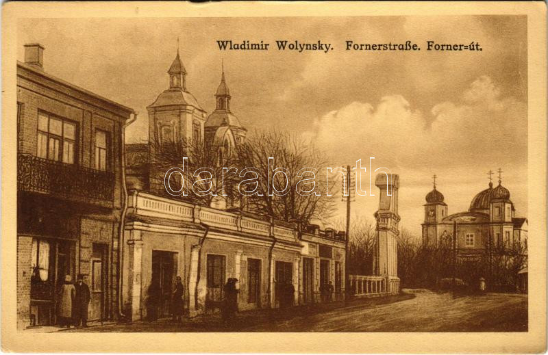 Volodymyr-Volynskyi, Wladimir Wolynsky, Wladimir Wolinskij; Fornerstra... https://www.darabanth.com/de/444-Fernauktion/444.0/Ansichtskarten/Ukraine~2000091/Volodymyr-Volynskyi-Wladimir-Wolynsky-Wladimir-Wolinskij-Fornerstrasse-Forner-ut-street-EK~II2934030