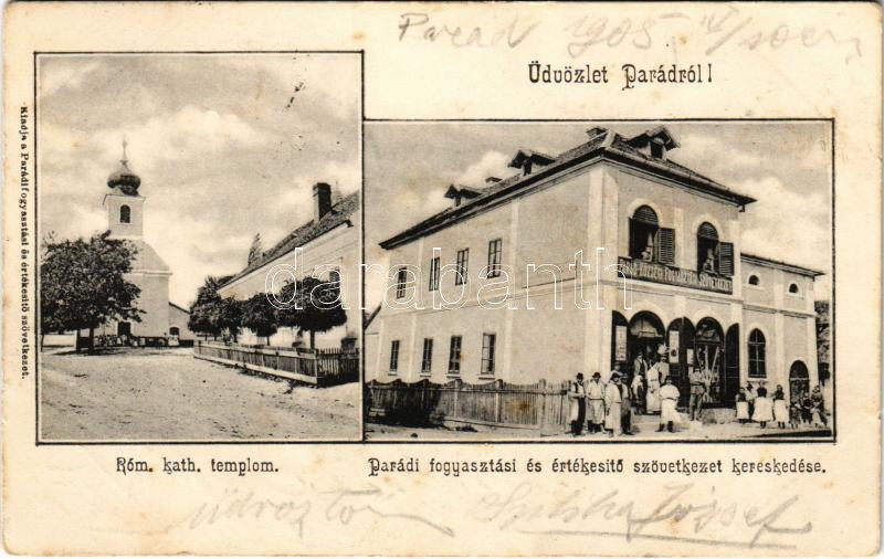 1905 Parád, Római katolikus templom, fogyasztási és értékesítő szövetk... https://www.darabanth.com/de/444-Fernauktion/444.0/Ansichtskarten/Ungarn~2000005/1905-Parad-Romai-katolikus-templom-fogyasztasi-es-ertekesito-szovetkezet-uzlete-es-sajC3~II2928987
