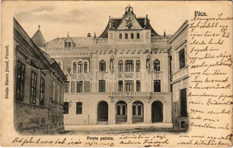1905 Pécs, Posta palota és távirda. Kiadja Blancz József https://www.darabanth.com/de/444-Fernauktion/444.0/Ansichtskarten/Ungarn~2000005/1905-Pecs-Posta-palota-es-tavirda-Kiadja-Blancz-Jozsef~II2926279
