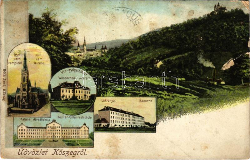 1908 Kőszeg, Római katolikus templom, Katonai alreáliskola, laktanya, ... https://www.darabanth.com/de/444-Fernauktion/444.0/Ansichtskarten/Ungarn~2000005/1908-Koszeg-Romai-katolikus-templom-Katonai-alrealiskola-laktanya-vizgyogyintezet-Roth-J~II2929502