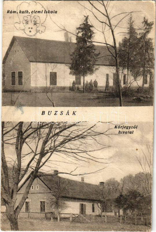 1926 Buzsák (Fonyód), Római katolikus elemi iskola, Körjegyzői hivatal... https://www.darabanth.com/de/444-Fernauktion/444.0/Ansichtskarten/Ungarn~2000005/1926-Buzsak-Fonyod-Romai-katolikus-elemi-iskola-Korjegyzoi-hivatal-fa~II2930069