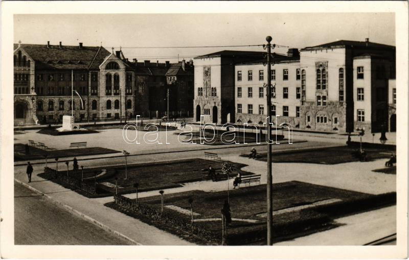 Beschreibung: 1939 Pécs, Egyetemi park részlet, Országzászló (Rb)
