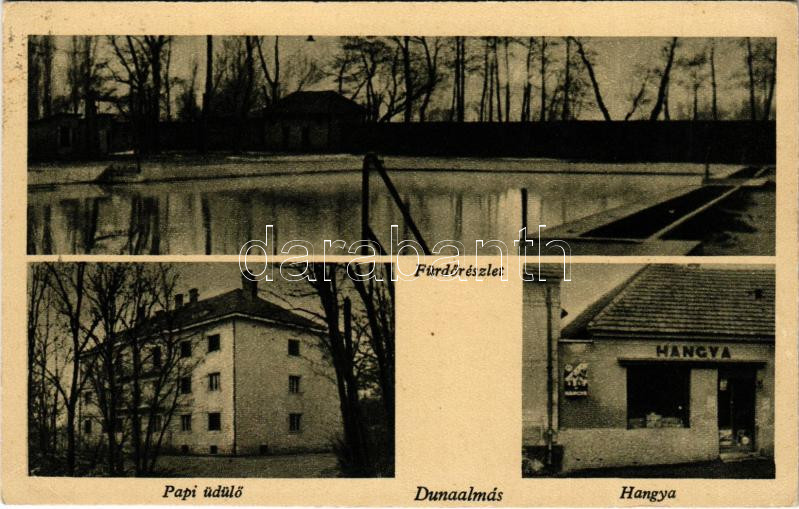 1943 Dunaalmás, Fürdő részlet, Papi üdülő, Hangya szövetkezet üzlete (... https://www.darabanth.com/de/444-Fernauktion/444.0/Ansichtskarten/Ungarn~2000005/1943-Dunaalmas-Furdo-reszlet-Papi-udulo-Hangya-szovetkezet-uzlete-EK~II2933506