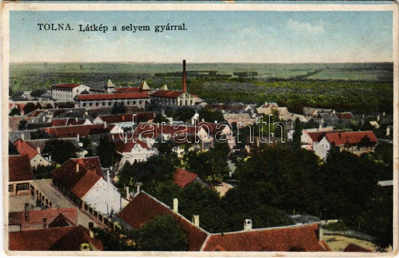 1943 Tolna, látkép a selyemgyárral. Özv. Brucker Nándorné kiadása (EK) https://www.darabanth.com/de/444-Fernauktion/444.0/Ansichtskarten/Ungarn~2000005/1943-Tolna-latkep-a-selyemgyarral-Ozv-Brucker-Nandorne-kiadasa-EK~II2934367
