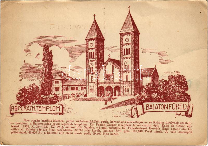 Balatonfüred, Római katolikus templom. Dr. Darnay (Dornyay) Béla: Honi... https://www.darabanth.com/de/444-Fernauktion/444.0/Ansichtskarten/Ungarn~2000005/Balatonfured-Romai-katolikus-templom-Dr-Darnay-Dornyay-Bela-Honismerteto-c-kepeslevelezC5~II2928704