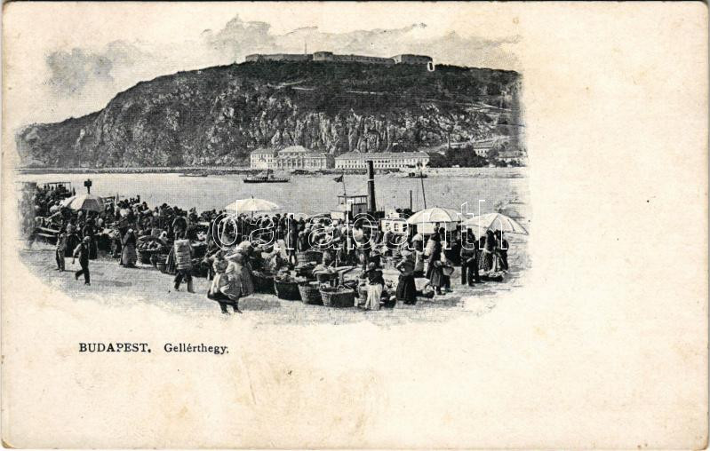 Beschreibung: Budapest XI. Gellérthegy, piac a pesti rakparton, az Erzsébet híd még nem épült meg (fl)