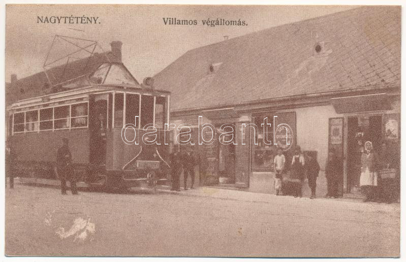 Beschreibung: Budapest XXII. Nagytétény, HÉV villamos végállomás (megszűnt), üzletek. Bentheim műintézet kiadása