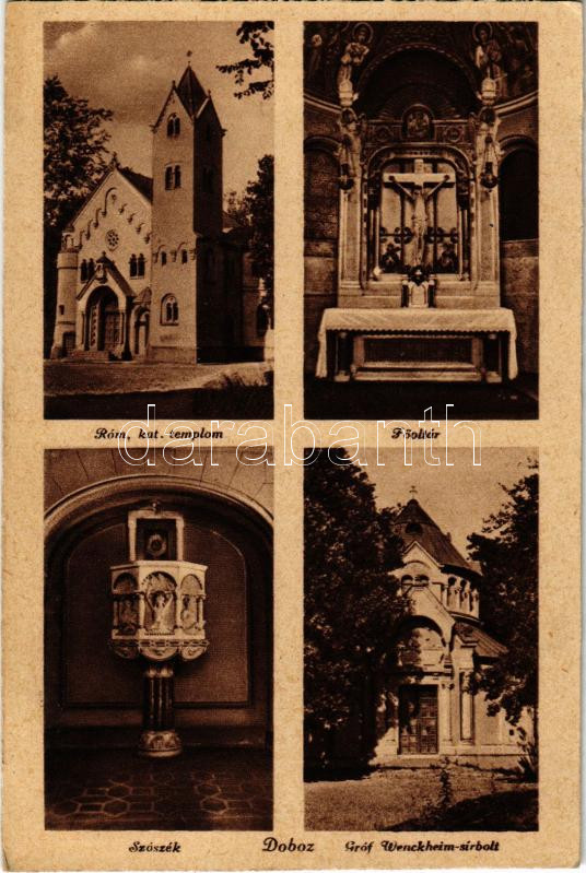 Doboz (Békés), Római katolikus templom, főoltár és szószék belső, Gróf... https://www.darabanth.com/de/444-Fernauktion/444.0/Ansichtskarten/Ungarn~2000005/Doboz-Bekes-Romai-katolikus-templom-fooltar-es-szoszek-belso-Grof-Wenckheim-sirbolt~II2925716